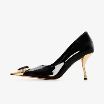 Продолжаем поиски наряда на корпоратив и другие новогодние вечеринки. Лодочки с металлическим мысом числятся в суперхитах сезона, что подтверждают фэщн-блогеры. Стало быть, подарок отличный.