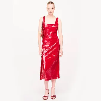 Еще один лот для хронически опаздывающих девушек – нарядное платье в главном цвете 2026-го. Это уже готовый образ на Новый год, осталось только добавить туфли. Любые нейтральные лодочки или босоножки подойдут. Тик-так, время идет, собираться придется быстро!