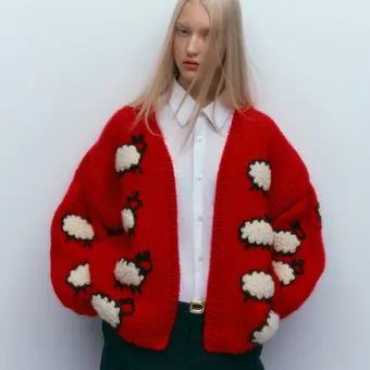 Мы бы выбрали кардиган в оверсайзе, чтобы кутаться в него длинными зимними вечерами. Или засыпать в кресле за чтением хорошей книги, считая овечек...