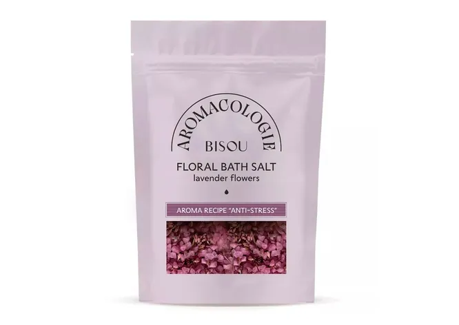 Эта соль для ванны такая красивая, что ее даже жалко использовать по назначению :) К счастью, в новогодний период антистресс-соль с цветками лаванды от Bisou продается с отличной скидкой, так что можно запастись этим средством на долгие месяцы вперед.