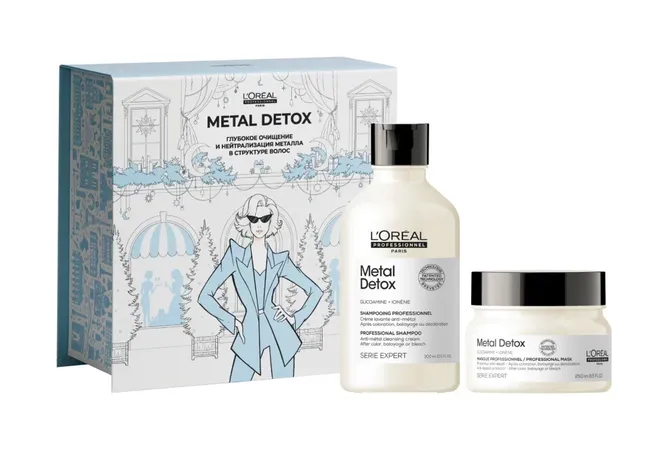 У L’Oreal Professionnel всегда очень красивые праздничные наборы, да еще и с очень полезным содержимым. Например, комплекс Metal Detox поможет усилить домашний уход за окрашенными волосами и нейтрализует металлические частицы меди, которые скапливаются в структуре волоса, делают его более ломким и влияют на результаты окрашивания. Благодаря маске и шампуню с профессиональным эффектом можно продлить свежесть цвета и сэкономить на визитах к колористу.