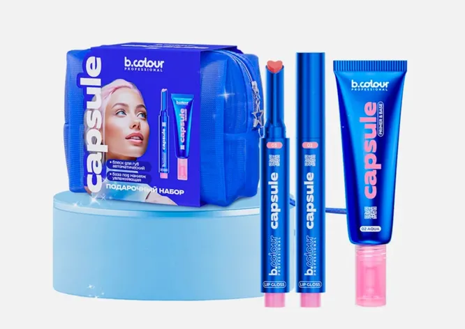 Декоративная косметика — тоже не самый удобный подарок, если ты плохо знакома со вкусами человека. Но можно сделать ставку на наборы с универсальными средствами — например, на эту новогоднюю «лимитку» от B.colour Professional. В ней ты найдешь увлажняющую базу под макияж, которая маскирует поры и морщины, а также зеркальный блеск для губ, который увлажняет и визуально увеличивает губы, а также подчеркивает красоту их естественного оттенка.