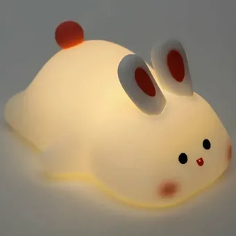 Маленький зайчик, которого так и хочется погладить. Он изготовлен из мягкого пищевого силикона, поэтому безопасен при использовании в комнате, где есть младенцы. Ночник оснащен сенсорным управлением и регулировкой яркости, что позволяет легко выбрать комфортный уровень свечения. Еще у него есть функция таймера, он отключится, и спать получатель презента и его близкие будут в полной темноте, что очень важно для выработки мелатонина.