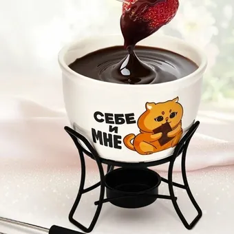 Фондю придумали несколько веков назад, и сегодняшние какелоны не только выполняют свою функцию, но и радуют глаз. Недорогой, но очень полезный подарок можно положить в новогодний чулок для ценителей красивой посуды и любителей простого и при этом изысканного блюда. Компактная фондюшница подходит для приготовления различных видов фондю, включая сырное и шоколадное.