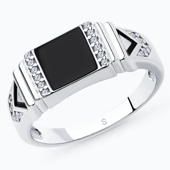 Даже если мужчина относится к украшениям прохладно, некоторые изделия способны растопить его сердце. К ним мы отнесем часы и кольца-печатки. Выбирая подарок в чулок на Новый год, присмотрись к изделию из серебра, выполненного на контрасте холодного оттенка металла и глянцевой черной эмали. Камни-вставки расставляют акценты и идеально вписываются в сложный геометрический узор. Строгий и элегантный дизайн кольца – дополнение делового образа или маркер брутального повседневного стиля.
