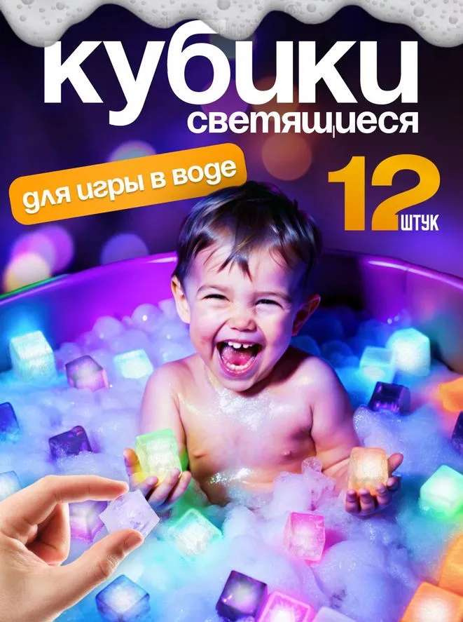 Превратить прием ванны в волшебное приключение? Легко! Светящиеся кубики для купания покорят сердце любого малыша. Изготовленные из прочного безопасного пластика, они переливаются разными цветами. Кубики можно использовать для игры и обучения. Время работы – до 30 часов, возможности смены батареек нет, так что рекомендуем тщательно вытирать игрушки после каждого купания, чтобы они служили дольше.