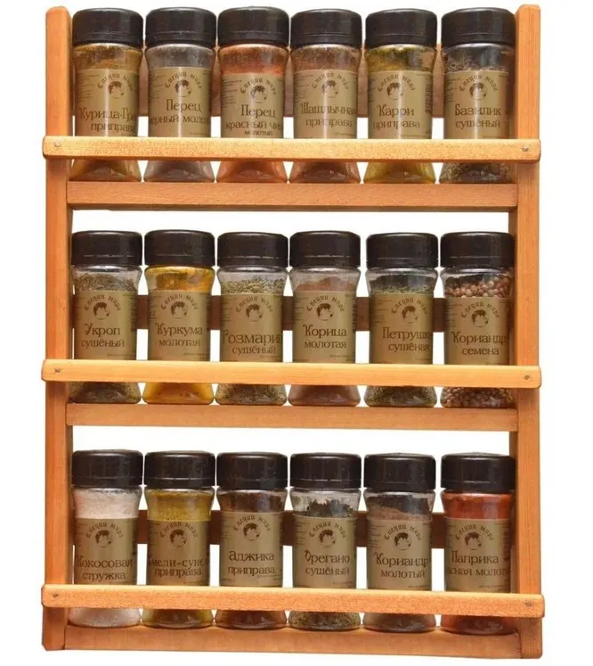Красивая деревянная полка с набором необходимых специй – прекрасный подарок любому кулинару. Даже если хозяева не готовят сами, а заказывают еду, пряности все равно пригодятся для придания новых оттенков знакомым блюдам. В набор входят разные виды перца, аджика, чеснок, корица, карри и многое другое, а деревянная полка хорошо вписывается в любой интерьер.