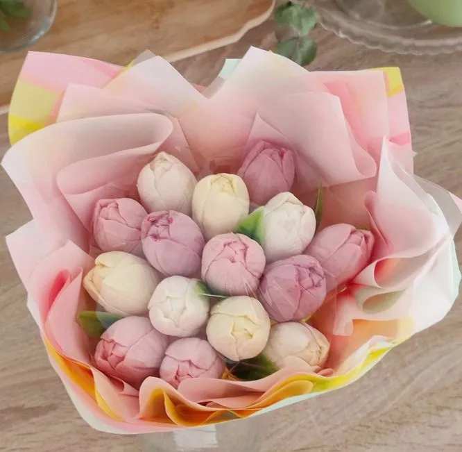 Необычная альтернатива обычным букетам – цветы из белого шоколада. Они точно не завянут! Бутоны выполнены из 100% бельгийского шоколада и не содержат искусственных добавок. Важно: листики у букета несъедобные, не стоит их пробовать на вкус.