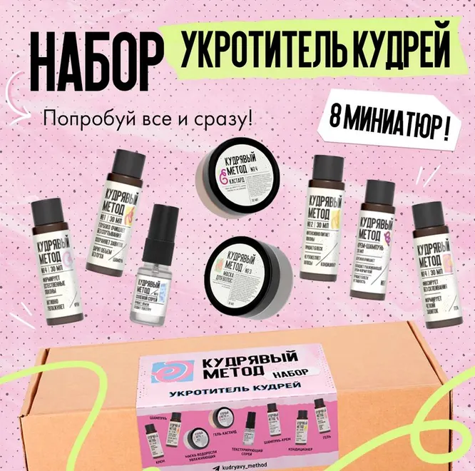 Подруга давно мечтает попробовать «кудрявый метод», но никак не решится купить необходимые средства? Подари ей этот набор, состоящий из мини-упаковок шампуня, крема-шампуня, кондиционера, геля для укладки, крема-ливина, геля-кастарда, увлажняющей маски и текстурирующего геля. Буклет с подробной инструкцией по применению прилагается. Идеальный подарок, чтобы определиться со своими предпочтениями.
