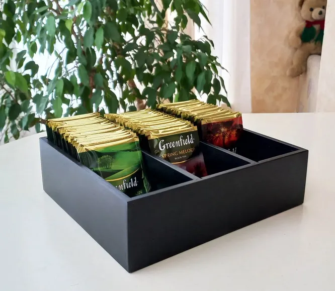 Бюджетная, но полезная вещь – деревянная подставка для чайных пакетиков. Такой подарок обязательно порадует любителей чая: теперь у них на кухне всегда будет порядок. Впрочем, никто не запретит использовать эту практичную подставку и в офисе.