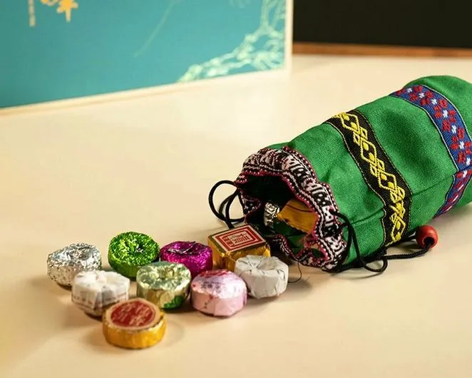25 видов пуэра в симпатичном текстильном мешочке – бюджетный подарок, который точно понравится любителям китайского чая. В наборе есть черные и зеленые чаи с розой, хризантемой, клейким рисом, мандарином, пионом и другими добавками. Каждый день – новый вкус!