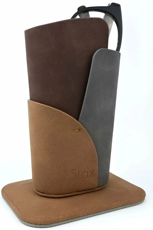 Изготовленная из мягкой искусственной замши подставка идеально подходит для очков Его можно поставить на прикроватную тумбочку, рабочий стол, в ванную – одним словом, в любое место, где приходится снимать очки. Футляр и подставка поединяются с помощью мощного магнита, а универсальные оттенки позволяют легко вписать этот аксессуар в интерьер. Это незаменимая вещь для тех, кому в течение дня приходится менять разные пары очков.