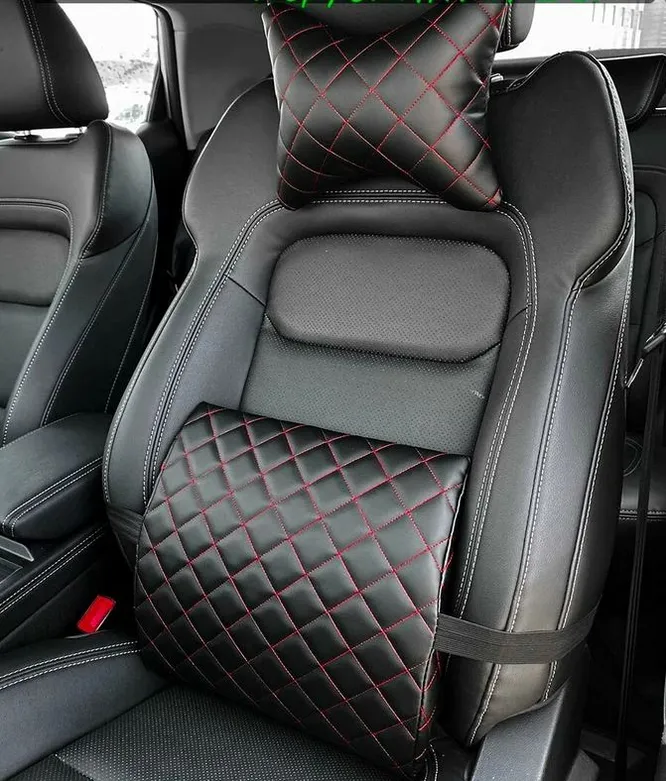 Набор из двух подушек поддерживает шею и спину во время автомобильных поездок, делая путешествие комфортным и приятным. Подушки надежно закрепляются к сиденью с помощью резинок. Их можно использовать не только в автомобиле, например, валик под поясницу сделает более удобным и офисное кресло.