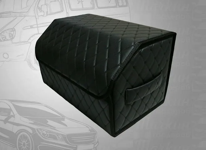 Вместительный автомобильный органайзер поможет наконец навести порядок в багажнике. Выполненный из прочной экокожи, он имеет жесткий каркас и устойчив к износу. Внутри предусмотрено два отделения, а боковые ручки позволяют при необходимости легко переносить органайзер с места на место. Идеальный подарок для тех, кто много времени проводит за рулем.