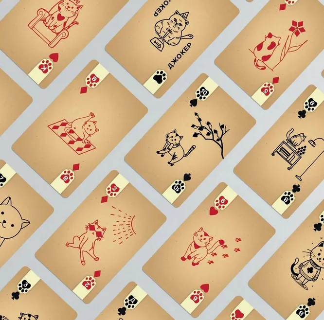 В доме, где любят котиков, следует играть только в такие карты. Нет, у этой колоды, конечно, есть и другие достоинства, например, качество печати и QR-код, по которому можно посмотреть правила игр. Но главное в них – уникальный дизайн. Рекомендуем в качестве милого подарка тем, кто любит кошек.