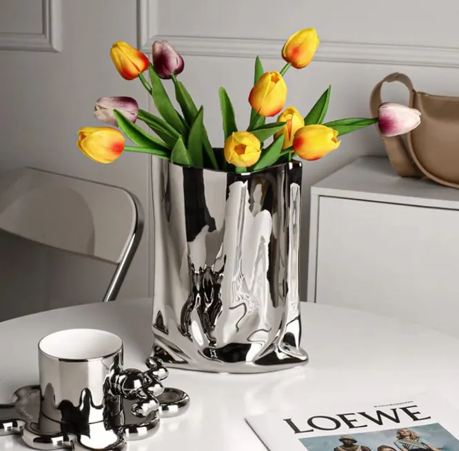 Если твоя мама часто получает в подарок цветы (от тебя или от кого-то еще), то ей наверняка пригодится симпатичная ваза. Мы предлагаем серебристую керамическую модель, которая смотрится стильно и современно, сочетается с любыми цветами и добавляет прелести любому интерьеру.