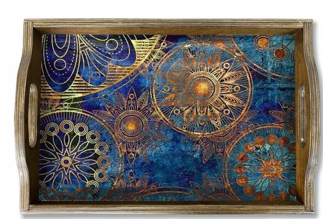 Для любительниц завтракать в постели и не только – добротный деревянный поднос с оригинальным узором. Если идея кофе в постель твою маму не привлекает, она может использовать подарок для хранения мелочей.