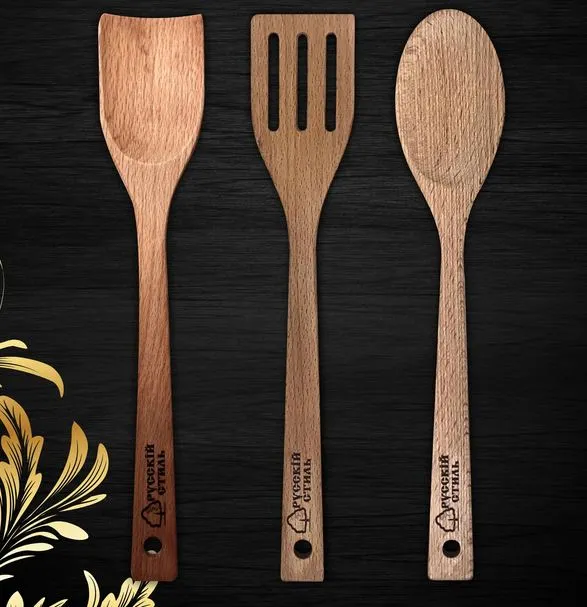 Без деревянных лопаток на современной кухне не обойтись: они удобны, гигиеничны, а самое главное – не царапают антипригарное покрытие. Предлагаем в качестве подарка для мамы набор из обычной лопатки, лопатки с прорезями и ложки. Они изготовлены из натурального бука, долговечны и удобны в использовании.