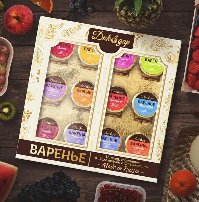 Для выпечки, для сыра или просто для тостов – этот набор из 12 мини-баночек варенья всегда придется кстати. Если ищешь вкусный подарок для мамы, то считай, что ты его уже нашла. Варенье не содержит ароматизаторов и загустителей, полностью натурально. За разнообразие вкусов этому набору отдельный плюс: наряду с привычными малиной и смородиной производители использовали и более редкие ягоды – морошку, облепиху, черноплодную рябину, калину, жимолость и другие.