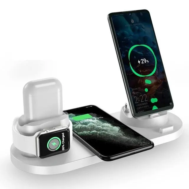 Беспроводное зарядное устройство поможет держать его стол или прикроватную тумбочку в порядке. Больше никаких проводов! Она одновременно можно заряжать два смартфона, Bluetooth-наушники и «умные» часы.