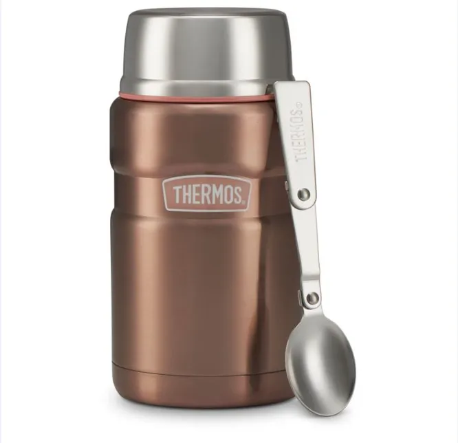 Стильный и легкий термос с широким горлом выполнен из нержавеющей стали. Он поможет сохранить обед теплым и вкусным.