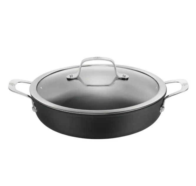 Эта сковорода понравится как новичкам, так и опытным домашним поварам. Есть антипригарное покрытие и удобные ручки. Подойдет для приготовления яичницы, варки макарон, тушения мяса и овощей.