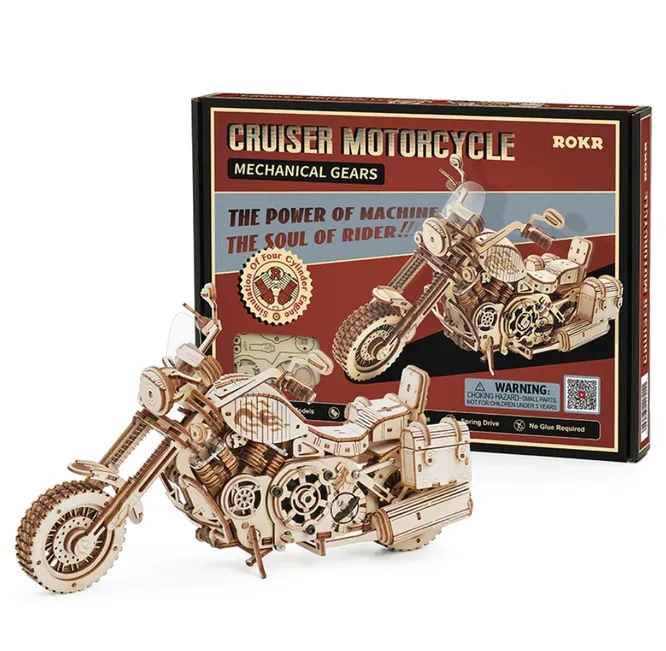 Если обычные пазлы ему надоели, подари папе нечто более интересное и сложное — деревянный 3D-пазл. В итоге у него должна получиться модель крутого мотоцикла.