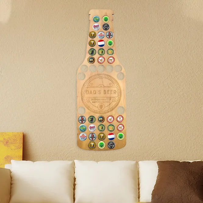 Отверстия на этой доске в форме бутылки имеют маленькие зубцы, которые соответствуют гофрированным краям пивных крышек. Интересно, как быстро твой папа заполнит эту доску?