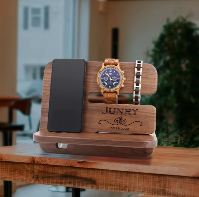 Эта подставка позволит ему хранить телефон, ключи, кошелек и другие важные вещи в одном месте. И он больше не будет спрашивать, куда он положил бумажник!