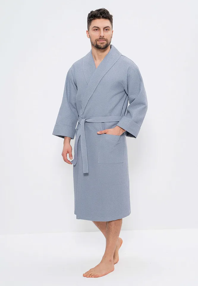 Халат — прекрасный способ сделать его утро немного уютнее. Он изготовлен из 100% мягкого хлопка, который приятно прилегает к телу.