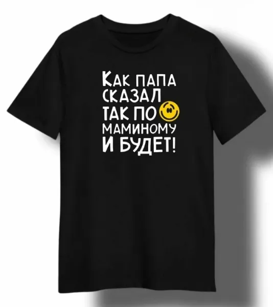 Шуточный подарок, которым ты можешь поднять папе настроение 1 апреля или в Международный мужской день (19 ноября). Изделие выполнено из хлопка, лаконичный принт не деформируется после стирки и устойчив к выгоранию. Базовый предмет гардероба подходит для демисезона и может использоваться как в повседневной жизни, так и для активного отдыха. Папа может надевать футболку каждый раз, когда возникнет желание угодить маме или просто развеселить компанию.