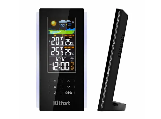 От более бюджетных вариантов мини-станция отличается наличием выносного датчика, это увеличивает точность предсказаний. Также устройство измеряет давление, влажность и температуру в помещении и на улице.