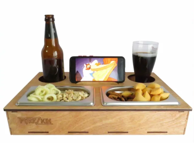 Мужчины ценят дома функциональность и комфорт, а если в процессе наслаждения отдыхом всё под рукой и ничего не отвлекает – для многих высшая степень блаженства. На специальный поднос для напитков, снэков и всяких вкусностей легко установить телефон и смотреть футбол или фильмы. Такой презент приятно подарить папе на день рождения, Новый год или семейный праздник. Столик можно ставить на диван, кровать, сидение машины, брать на природу, оставляя руки свободными.