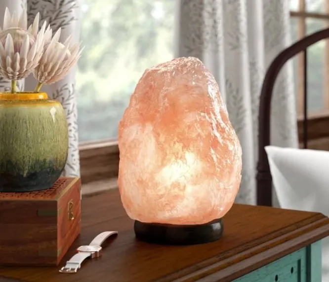 Плафон изготовлен из кристаллической каменной соли, созданной природой на протяжении сотен миллионов лет. Электрический свет в лампе нагревает соль, производя ионы хлора, натрия и йода. Они оказывают положительное воздействие на слизистые оболочки, не вызывая раздражения. В комнате папы с таким подарком станет уютнее, а воздух – чище.