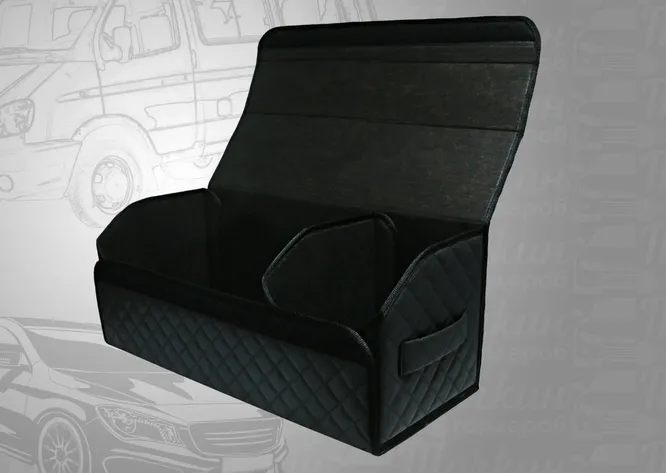Говорят, что страшнее женской сумочки могут быть только мужские карманы. Мы бы внесли поправочку – только салон и багажник его авто. Предлагаем присмотреться к достойному подарку для папы, у которого есть практически всё. Если он стремится содержать свою машину в чистоте, но бардак все равно откуда-то берется, папе точно не хватает стильного органайзера, которым не стыдно похвастаться перед знакомыми. Высота бокса позволяет разместить емкость со стеклоомывающей жидкостью объемом 5 литров и кучу мелочей, которая больше не будет повсюду разбросана.