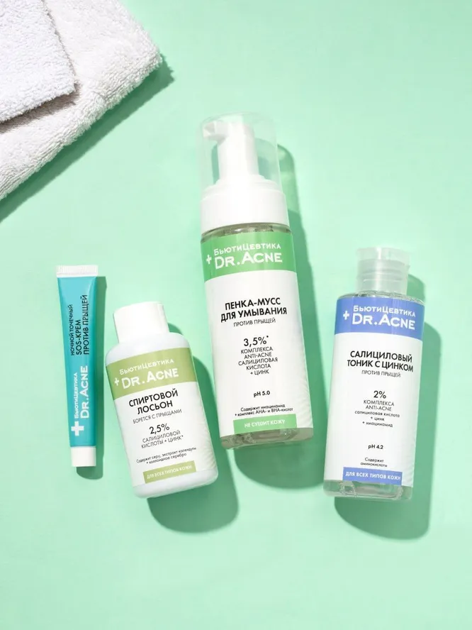 Этот набор на базе салициловой кислоты работает комплексно. С одной стороны, он не дает развиваться новым воспалениям, а с другой – подсушивает и уменьшает уже существующие воспаления. Для максимального эффекта нужен курс из 21 дня, но первые улучшения будут заметны уже через неделю.