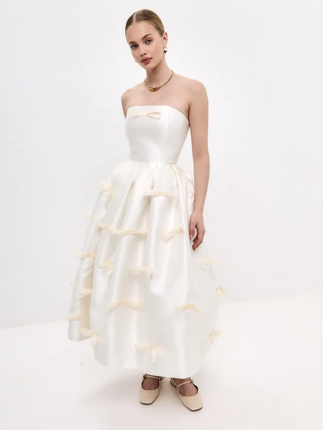 Это находка из разряда «надо купить себе любимой». То есть из нашего любимого разряда! В линейке Kiri Brand появилась новая версия знакового для бренда платья с бантами – только теперь молочное с золотым отблеском. Внутренняя диснеевская принцесса ликует!