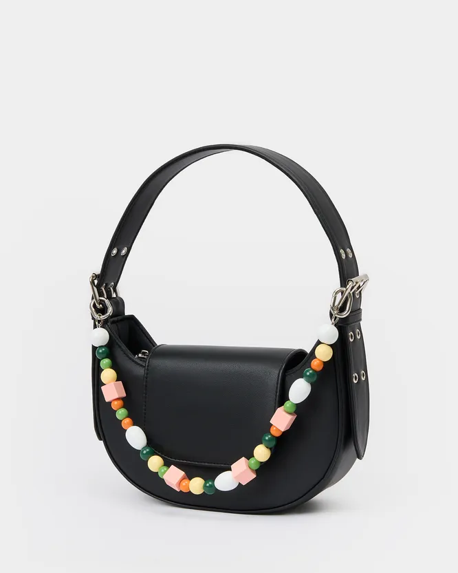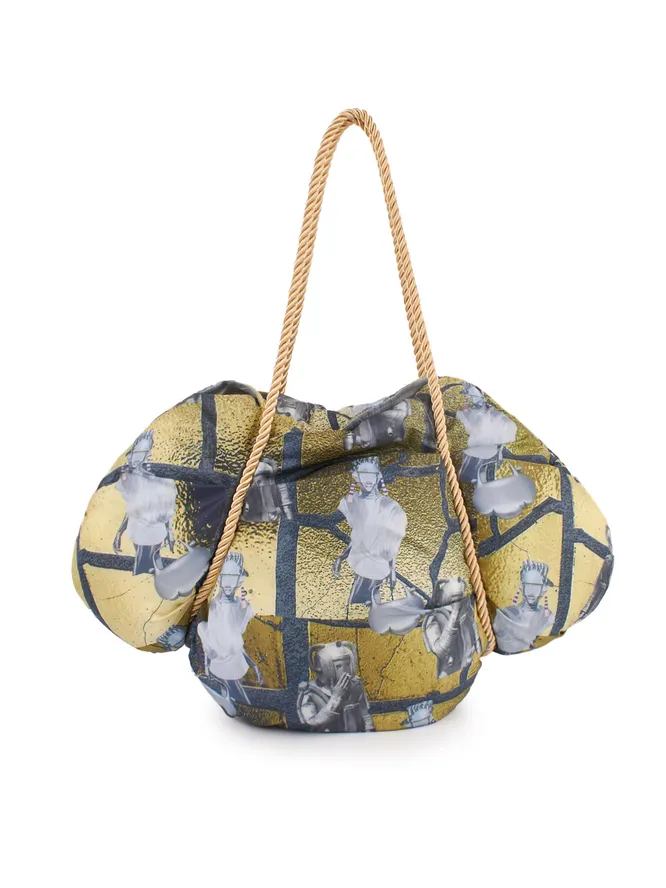 Смотри, какую презабавную вещицу мы нашли! Arny Praht выпустили черную сумку MOVE S с минималистичным внешним видом, которая напоминает удобный шоппер, с которым мы привыкли ходить за покупками. Но если заглянуть внутрь, то вместо однотонной подкладки ты увидишь паттерн оливье. Обвес из деревянных бусин-ингредиентов салата в дропе тоже имеется – надо нам и то, и другое!