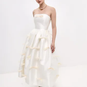 Это находка из разряда «надо купить себе любимой». То есть из нашего любимого разряда! В линейке Kiri Brand появилась новая версия знакового для бренда платья с бантами – только теперь молочное с золотым отблеском. Внутренняя диснеевская принцесса ликует!