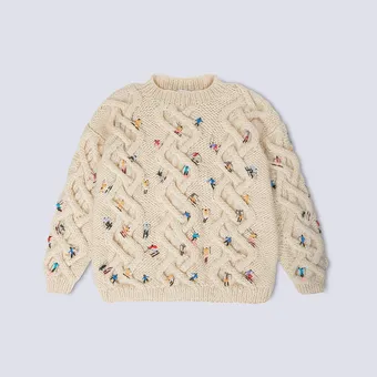 Ну какая прелесть! У Mirstores вышла лимитированная линейка со свитером и шарфом, расшитыми маленькими фигурками лыжников. В комплекте они смотрятся здорово, но и по отдельности станут приятным подарком. Уютно!
