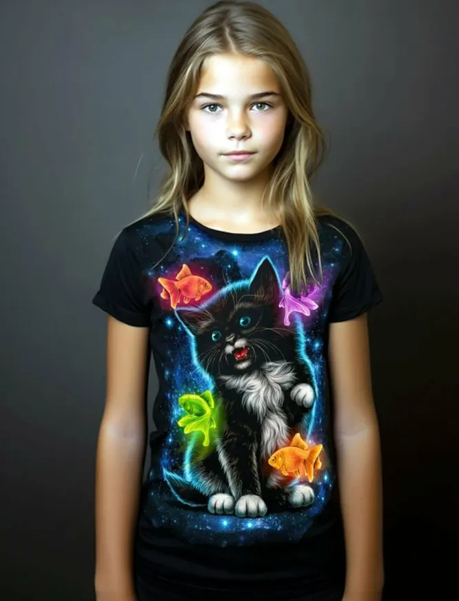 Рисунки и надписи на одежде играют особую роль в формировании образа ребенка. Они помогают ему развивать индивидуальность и вкусовые предпочтения. Одни мальчишки и девчонки выбирают принты с героями мультфильмов и животными, другим нравятся абстрактные узоры и прикольные фразы. Это способ самовыражения и часть имиджа детей любого возраста. Особенно популярны у детей футболки, на которых рисунки светятся в темноте. Такой подарок можно преподнести ребенку в день рождения, на Хэллоуин, 23 февраля или 8 Марта. Нанесенный на изображение фосфор безопасен для здоровья, а носить изделие можно хоть каждый день – в будни и на вечеринки.