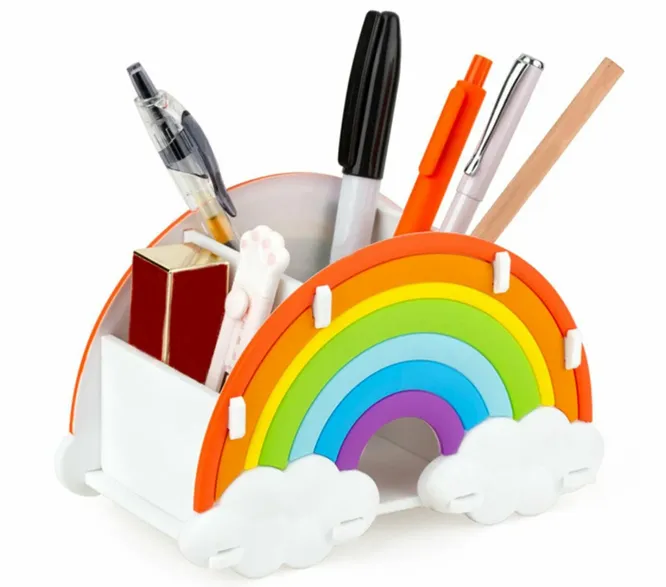 Помогающие организовать пространство вещи больше интересны взрослым, чем детям, поэтому подарки из этой серии должны быть привлекательными и необычными. Как, к примеру, аксессуар в виде радуги, в который поместятся ручки, карандаши, кисти и фломастеры – всё то, что обычно разбросано по столу и не только. Компактный органайзер отличают минималистский дизайн и сочные цвета. Сначала ребенка можно увлечь сборкой держателя, с которой он с легкостью справится, а потом привлечь к наведению чистоты и порядка. Благодаря таким презентам девочек и мальчиков проще научить быть аккуратными, следить за своими вещами и ценить их.