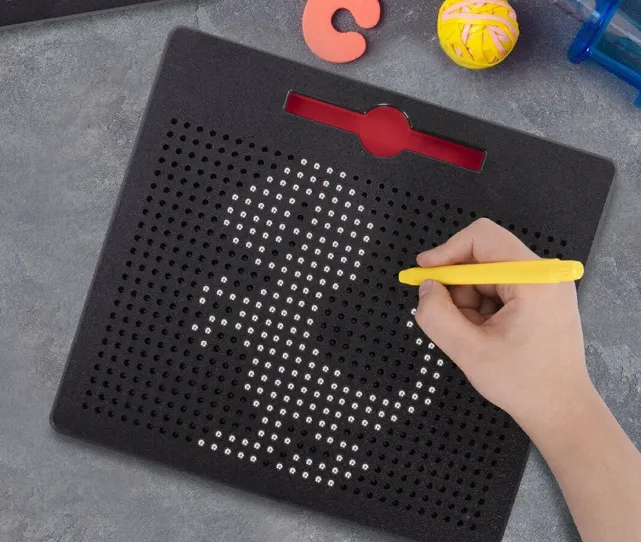 Девчонки и мальчишки привыкли рисовать мелками, карандашами, фломастерами и красками, а как насчет того, чтобы изобразить зайца или мишку магнитом? Магнитный планшет стимулирует у детей развитие мелкой моторики, воображения, терпения, пространственного мышления. В комплекте 380 металлических шариков и магнитный стилус, который помогает их сортировать и создавать маленькие шедевры, придумывая свои или следуя образцу. Недорогой подарок-сувенир позволит малышу стать более усидчивым, он научиться рисовать по схемам, просчитывая каждый шарик. Взрослые могут давать ребенку задания нарисовать геометрические фигуры, изобразить буквы и цифры, а заодно проследить, чтобы шарики попадали исключительно в ячейки на планшете, а не в неожиданные места.