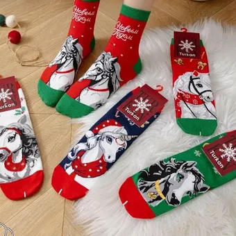 Носки – это не банальный, а самый необходимый и при этом недорогой подарок на Новый год. Праздничным презент делает принт с символом года – можно менять и чередовать чуть ли не каждый день все каникулы или поделиться с членами семьи, чтобы встречать 2026-й в стиле family look и устроить памятную фотосессию. Практичный сувенир уместно преподнести родственнику или коллеге, с которым заложилась традиция обмениваться креативными подарками. В составе 80% хлопка, остальное занимает полиэстер, так что изделия тянутся и хорошо сидят.