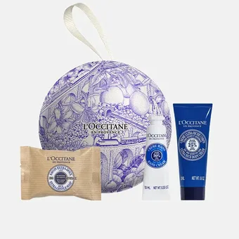 Внутри праздничного шара спрятан продуманный дуэт для питания и восстановления кожи рук и тела. Формулы на основе масла ши помогают справляться с сухостью, шелушением и ощущением стянутости, создавая защитный барьер от холода и ветра. Крем для рук быстро впитывается и смягчает кожу, крем для тела возвращает комфорт и эластичность, а мягкое мыло очищает и питает.
