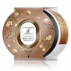 Скраб с ароматом бобов тонка и табака сочетает деликатное очищение и насыщенный уход. Частицы кокоса и бамбука мягко обновляют кожу, масла ши и какао делают ее гладкой и напитанной, а теплый пряный аромат окутывает и соблазняет всех вокруг.