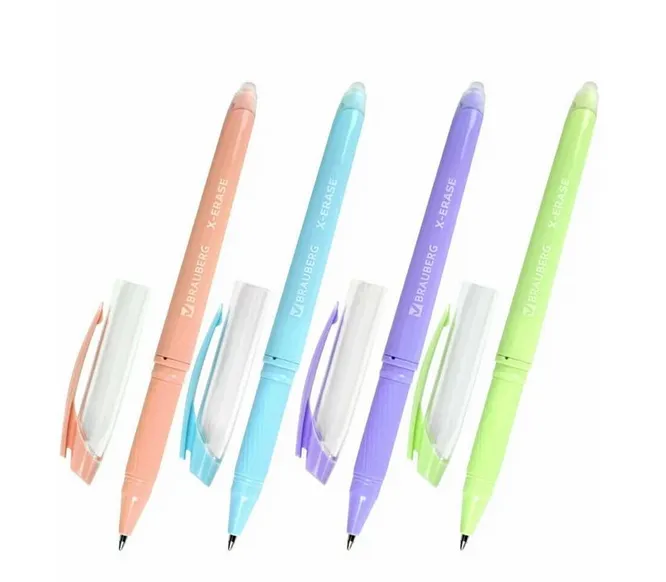 Ручки-стирайки пользуются популярностью у школьников любого возраста. Мы выбрали этот набор из 4 ручек пастельных оттенков. Это недорогой, но полезный подарок детям в школу на Новый год. Толщина линии — всего 0,35 мм, все ручки пишут синими термочернилами.