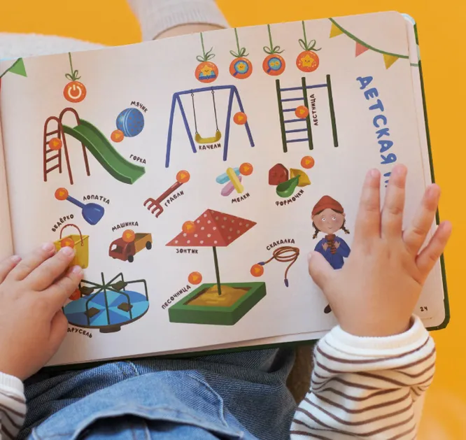 Обычно трехлетние малыши не умеют читать, но очень интересуются книгами. Особенно наполненными яркими иллюстрациями и доступными для их понимания функциями. Всевозможные окошки, подвижные элементы и разговорно-музыкальное сопровождение – все это нравится 3-летним детям, поэтому подарок в виде интерактивной книги приведет их в восторг. Мальчик или девочка могут самостоятельно листать издание, нажимая на кнопочки и знакомясь с окружающим миром. Благодаря этому книга не только расширяет кругозор, но еще развивает память и речь, пополняя словарный запас. На каждой странице есть игра, поэтому лучше маме или папе провести время вместе с ребенком, чтобы помочь ему и насладиться его успехами. Кстати, книга заряжается от кабеля, который идёт в комплекте, так что батарейки не нужны.