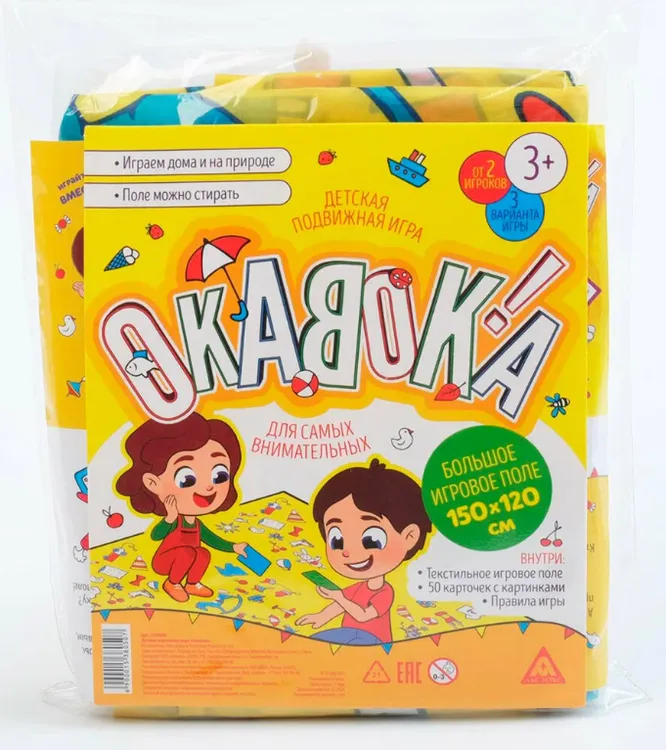 Именно эти два качества пригодятся в увлекательной игре, с помощью которой легко проверить, кто в компании самый шустрый и внимательный. Подарок понравится 3-летним детям не только привлекательным видом, но и простыми условиями. Нужно вытягивать карточки и быстро находить на огромном поле рисунки, которые на них изображены. Победит тот, у кого окажется больше карточек. Можно слегка усложнить задачу, загадывая картинку и изображая ее пантомимой. Хорошая возможность проявить актерские таланты! Также среди вариантов – придумывать слова самим, чтобы малыши их искали. Динамичную и веселую игру можно взять с собой на природу, чтобы развлечь ребенка на пикнике или на даче (ткань легко стирается). Или позабавить пришедших в дом маленьких гостей, устроив мини-турнир.