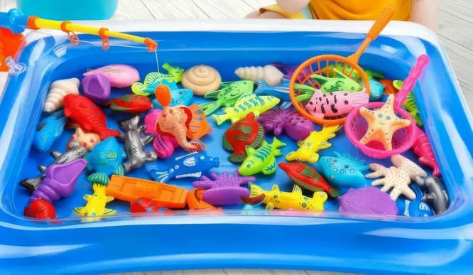 Одно из самых популярных развлечений для малышей в парках аттракционов и игровых комнатах – магнитная рыбалка. Крохи могут часами стоять с удочками возле огромного бассейна, чтобы поймать как можно больше рыб. Устроить такое соревнование можно и дома, если подарить 3-летнему ребенку небольшой надувной бассейн, пару удочек, сачок и несколько десятков морских обитателей. Занятие идеально не только для развлечения, но и развития мелкой моторики, координации движений, внимательности, усидчивости и ловкости. А заодно малыш научится считать и лучше запомнит цвета, если родители будут акцентировать на этом внимание. Рыбки могут разместиться и в ванной, когда нужно занять ребенка во время купания.